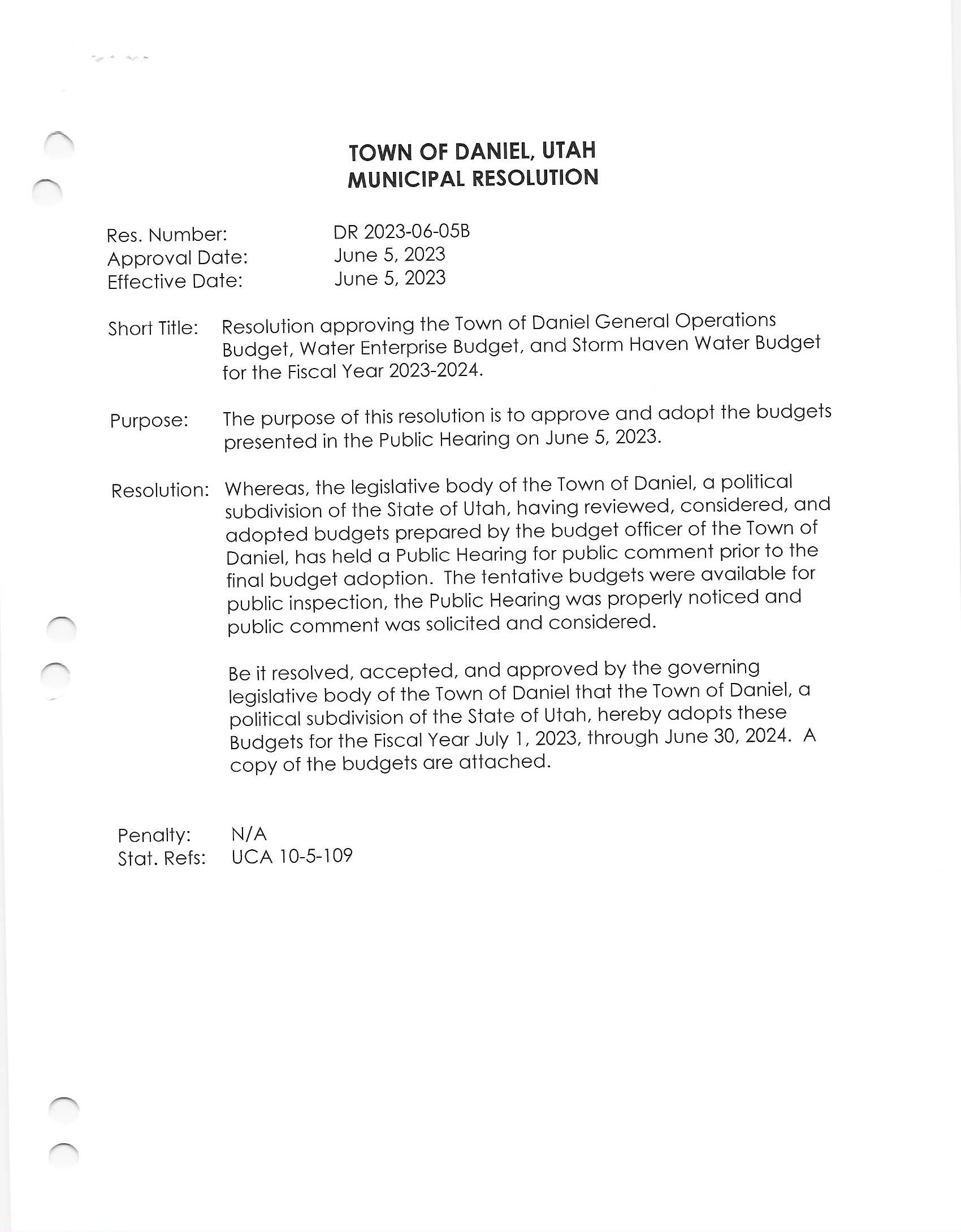 DR 2023-06-05B Resolution to Approve Budget for FY 2023-24 Posted on 06/26/2025 by Daniel_RecorderJune 26, 2025