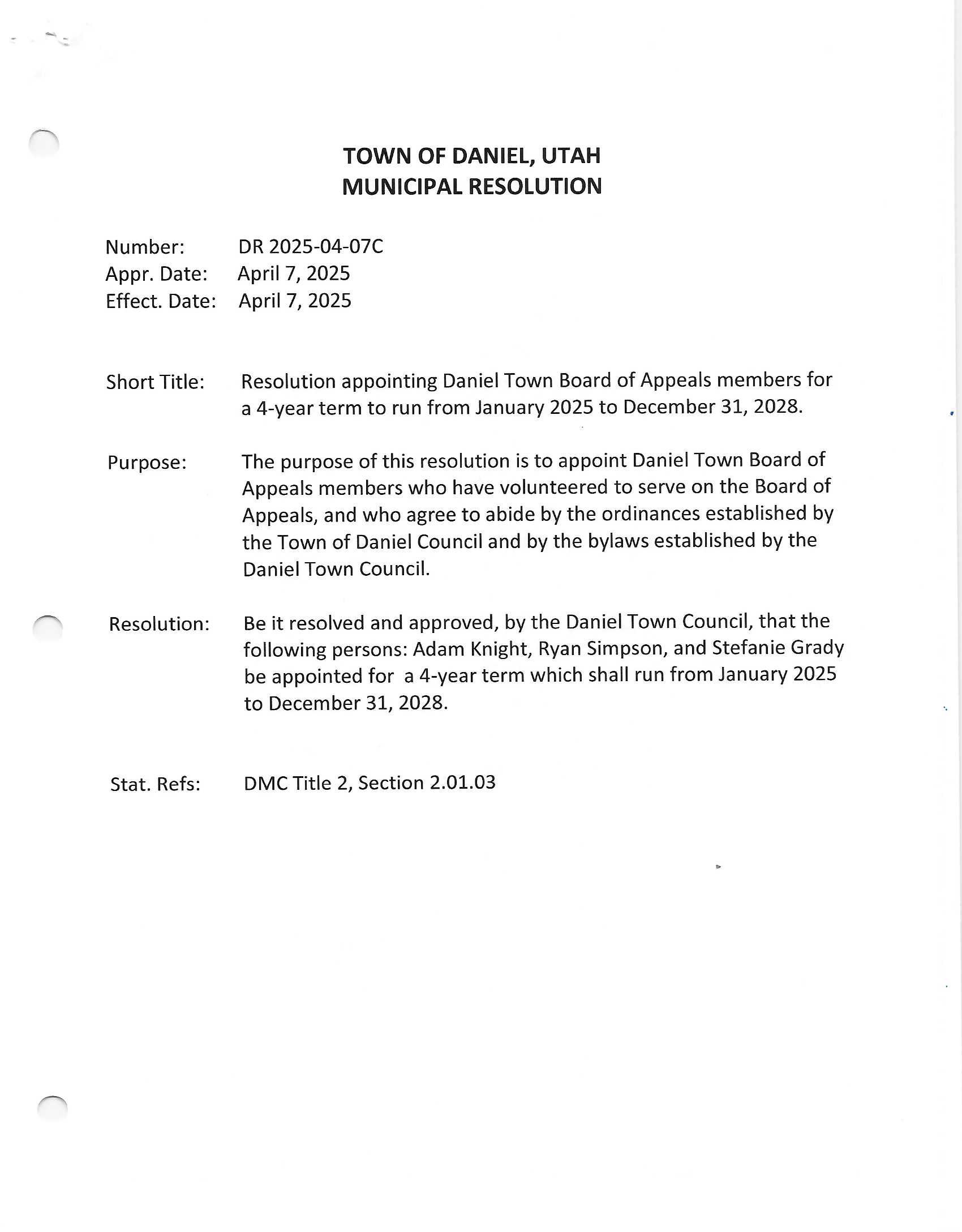 DR 2025-04-07C Appointment of Board of Appeals Members Posted on 06/26/2025 by Daniel_RecorderJune 26, 2025